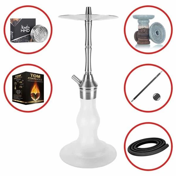 Die AEON Lounge Mini ist die, nur 42cm hohe Variante der beliebten Lounge. Sie zeichnet sich durch ihre sehr gute Verarbeitung aus und bietet Dir einige Besonderheiten. Die Metallteile der Shisha bestehen aus hochwertigem V2A Edelstahl aus der Schweiz und das Glas selbst ist mundgeblasen. Eine qualitativ hochwertige Verarbeitung von oben bis unten.