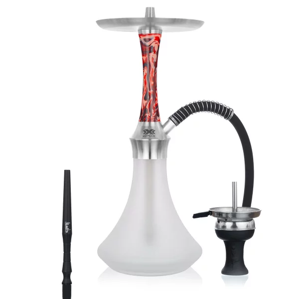 Die Pfeife bietet Dir mit ihrer geringen Größe von lediglich 46cm die Möglichkeit, sie ganz entspannt auch als Outdoor-Shisha zu nutzen und punktet dabei mit einem besonders leichten und angenehmen Durchzug. Schliffanschlüsse ermöglichen Dir zudem einen schnellen Auf- und Abbau. In der Base versteckt sich ein Closed-Chamber System, welches Dir ermöglicht abgestandenen Rauch problemlos aus der Bowl zu pusten. Der Diffusor am Tauchrohr lässt sich verstellen und auch abnehmen, wodurch du die Geräuschentwicklung beeinflussen kannst. Von Haus aus ist sie mit einem Schlauchanschluss mit 18/8 Schliff ausgestattet.