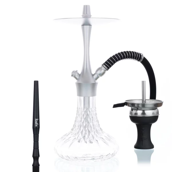 Mit unserer Aladin Alux 380 Silver Shisha bekommst Du eine kleine Shisha mit Rauchsäule aus Aluminium zum unschlagbaren Preis.