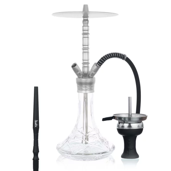 Mit unserer Aladin Alux M7 Shisha bekommst Du eine große Shisha mit Rauchsäule aus Aluminium.
